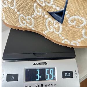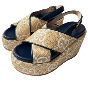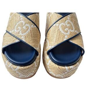 New Gucci Authentic Raffia Nappa GG Monogram Platform 703791 Sz 39 Rubber Soles