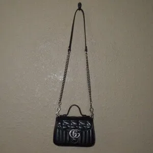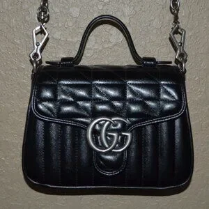 New Gucci GG Black Quilted Marmont Top Handle Shoulder Handbag