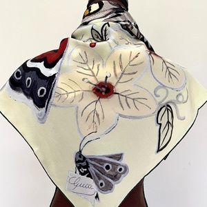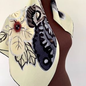 Authentic Gucci Logo Kris Knight Butterfly Flora Yellow Silk Scarf