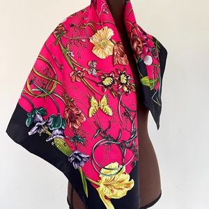 New Gucci Scarf Flora Infinity Print Hot Pink Multicolor Silk Wrap