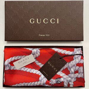 New Gucci Scarf GG Logo Ropes Print Nautical Style Silk Wrap