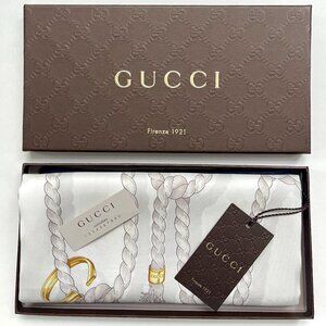 Authentic Gucci GG Logo White Ropes Print Silk Scarf
