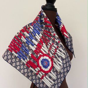 New Gucci Scarf GG Logo Web Club Silk Scarf Wrap with Gucci Gift Box