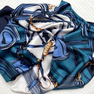 New Gucci Scarf Iconic Equestrian Logo Print Silk Wrap with Gucci Gift Box