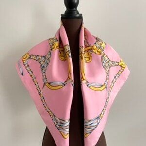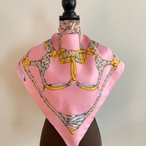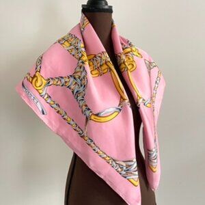 Authentic Gucci Iconic Logo Chain Pink Gold Silk Scarf