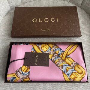 New Gucci Scarf Iconic Logo Gold Chain Silk Wrap with Gucci Gift Box