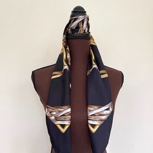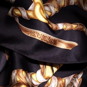 Authentic Gucci Iconic Black Gold Silk Scarf
