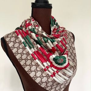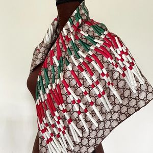 New Gucci Scarf Logo GG Print Club WEB Silk Wrap