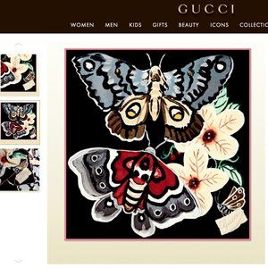 Authentic Gucci Logo Kris Knight Butterfly Flora Silk Scarf