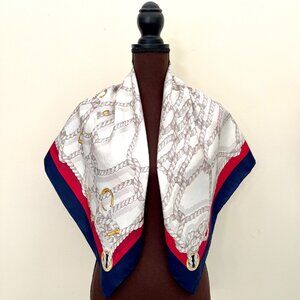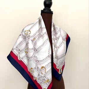 Authentic Gucci Logo GG White Ropes Print Blue/Red Border Silk Scarf