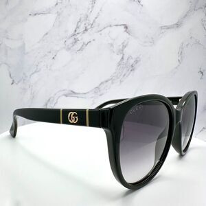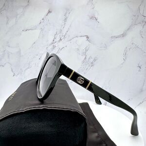 New Gucci Sunglasses Black Acetate Round Gold Metal GG Logo Italy Authentic