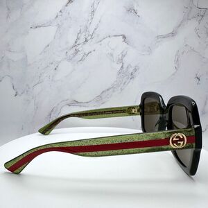 New Gucci Sunglasses Black Square Red Green Web Arms Gold Metal GG Logo