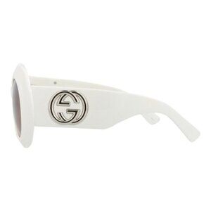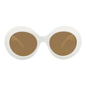 Gucci Womens Round/Oval White White Brown Fashion Designer Eyewear