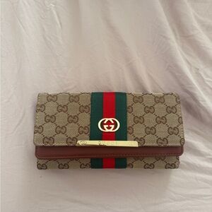 New Gucci large leather travel wallet with micro GG