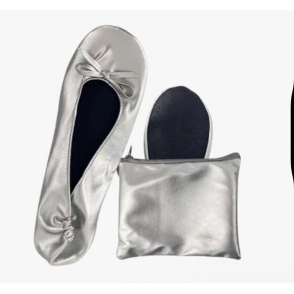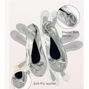 New Gudgudee Ballet Slippers Women's XL (10) Silver Roll Up With Pouch