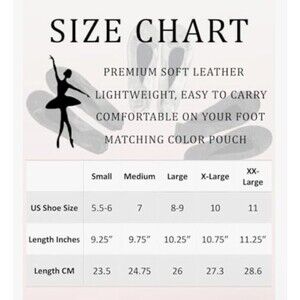 New Gudgudee Ballet Slippers Women's XL (10) Silver Roll Up With Pouch. Brand new, no box due to the style but do come with their pouch. Measures 10.75" from end to end. Stored in a smoke-free environment.