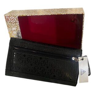 New Guess Black Logo Embossed Floral Wallet With ID Window Credit Card Slots