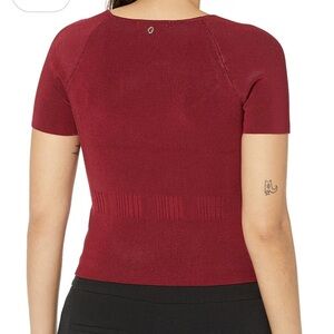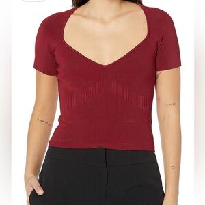 Stylish black short sleeve knit top. Perfect for casual wear. Garner the attention you deserve with this mixed ribbed sweater-knit top featuring a sweetheart neckline and short sleeves.
