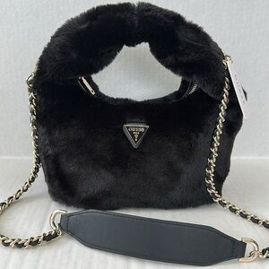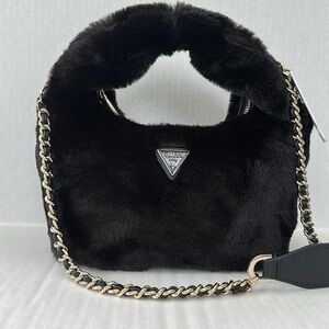 Carry chic with the Black Katine Hobo Bag. Featuring a versatile detachable crossbody strap, this bag is made with quilted faux fur and smooth PU trim for a luxe look. Complete with shiny gold hardware, it's the perfect accessory for any outfit.