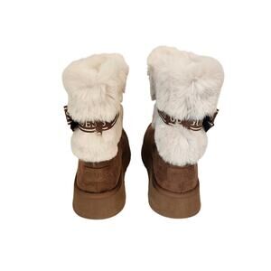 New Guess Denla Cold Weather Faux Fur Cozy Booties Brown 10