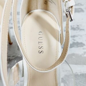 New Guess Felecia White Croc Print Heeled Buckle Strap Sandals E174