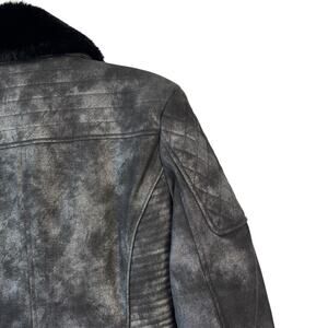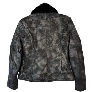 New Guess Metallic Faux Leather Fur Quilted Moto Biker Full Zip Jacket Sz Large