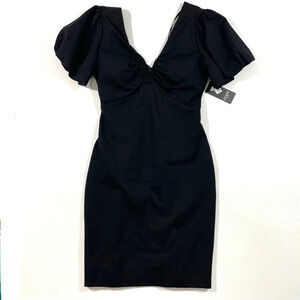 New Guess Puff Sleeve Ponte Mini Dress Black Padded Size 2