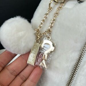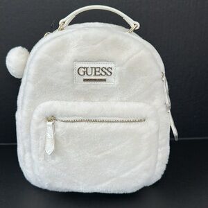 New Guess White Quilted Backpack with Pom-Pom Charm