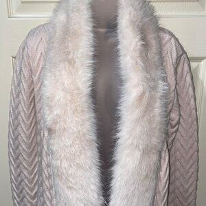 New Guess by Marciano Paula Faux Fur Trimmed Wrap Cardigan Coat With Chevron Kni