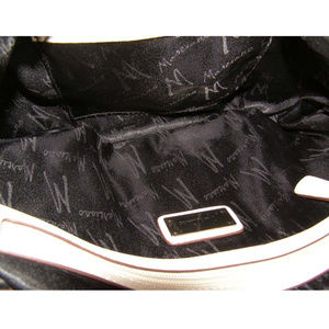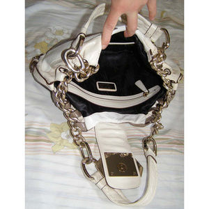 Thick chain hardware on straps, flip-over buckle closure. Has 1 zip pocket inside and a non-zip compartment.