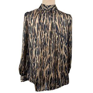 New H & M Women's Blouse Brown Black Leopard Size S Small Mock Neck