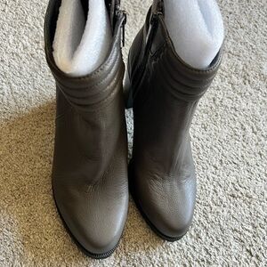 New H by Halston Size 8.5 Leather Cara Block Heel Ankle Boot Bootie Side Zip