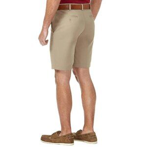 New! HAGGAR Mens Khaki Shorts Expandable Waist $55 Cool 18 Pro UV Sun Protection