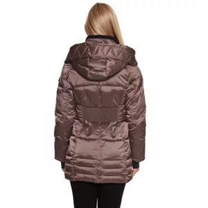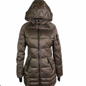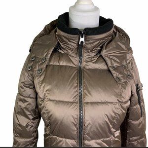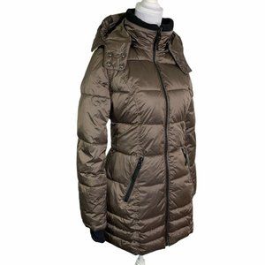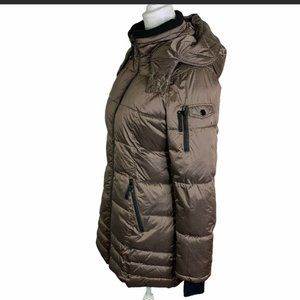 New HALITECH Down Filled Quilted Taupe Hooded Jacket XXL