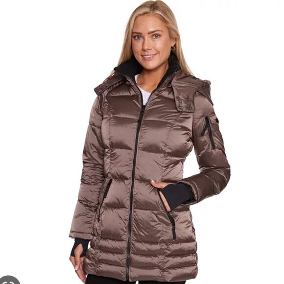 New HALITECH Down Filled Quilted Taupe Hooded Jacket XXL