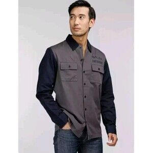 New HARLEY DAVIDSON Racing Colorblock Button Up Long Shirt Gray Navy Men’s M