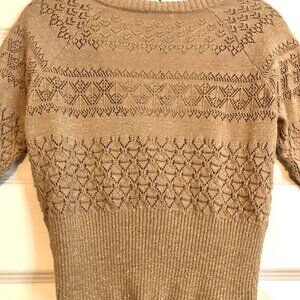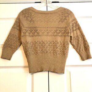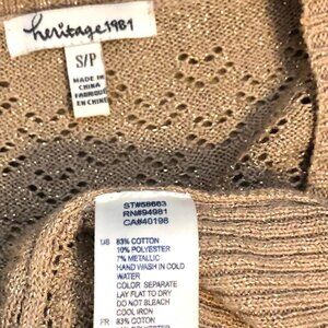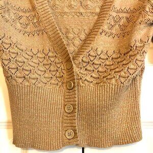New HERITAGE 1981 Antique Gold Metallic Crop Cardigan Open-weave Sweater S