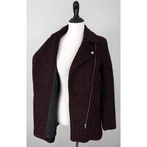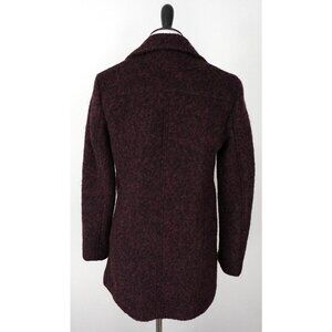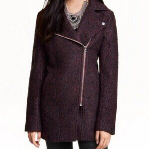 New H&M Divided Wool Blend Black Red Burgundy Zip Up Pea Coat Jacket Size 6