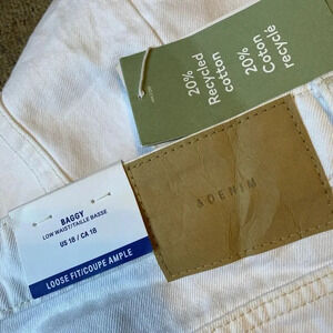 New H&M Low Waist Baggy Loose Fit Straight White Denim Jeans Lady Sz 18 Pocket