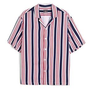 H&M Relaxed Fit Patterned Resort Shirt - White Red Blue - Men’s Large Oversized (Men’s).