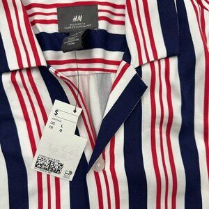 New H&M Relaxed Fit Patterned Resort Shirt - White Red Blue - Men’s Large Oversi