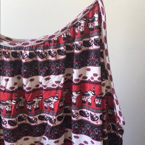 Brand new, never worn, no tags. H&M x Coachella festival boho bohemian cold shoulder long sleeve cropped top. Elephant and paisley pattern throughout. Colors are red black white. Bare shoulders with trumpet sleeve, thin delicate dainty straps. Approximate measurements: pit to pit 20", length 15". Soft flowy material. Size S. S8.