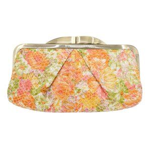 New HOBO International Chain Straps Snake Embossed Pleated Floral Clutch Bag