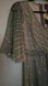 There is some stretch to this gown, so it can fit a little larger or smaller. Sequins radiate across the bodice and flow in rivulets down the skirt in this elegant gown. Hidden back zipper closure, surplice mock style wrap v neck, elbow length flutter sleeves. Comes with replacement beads and sequins. Some beading may be loose or missing due to the nature of dress but like I said it is new and comes with replacements.