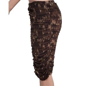 New! HOUSE OF HARLOW 1960 Ruched Fully Lined Brown & Tan Midi Pencil Skirt