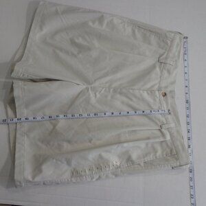Made of comfortable cotton material and featuring a solid beige color, these shorts offer a classic fit with a pleated front design and high-rise waist.