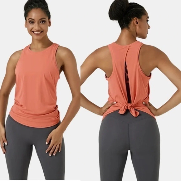 New Halara Split Tie Back Tank Top-No Bra Make Me Blush Coral