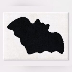 Add comfortable texture and creepy vibes to your bathroom floor with this Halloween Bat Bath Rug from Hyde & EEK! Boutique"", This rectangular bath rug features a black bat graphic on a white backdrop for a creepy look. The knitted bath rug feels soft and comfortable underfoot, while the latex backing helps keep it in place. Place it in front of your bathtub, shower or sink for functional style.