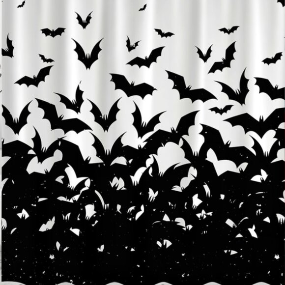 New! Halloween Bat Shower Curtain with Hooks - Spooky Backdrop!