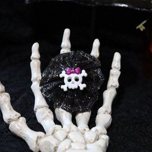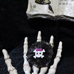 New! Halloween Black Pinwheel Poison Skull Pink Hair Clip - Hand Crafted